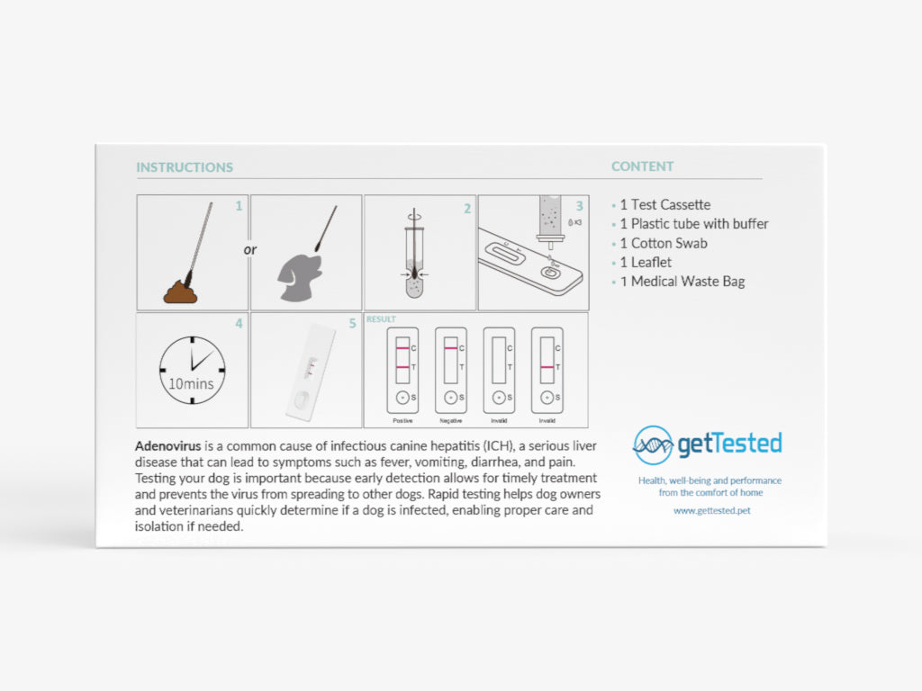 The Canine Adenovirus Antigen Rapid Test Kit is a rapid and reliable diagnostic tool for the qualitative detection of canine adenovirus (CAV) antigen in dogs. This self-test is particularly valuable for identifying canine adenovirus type 1 (CAV-1), the virus responsible for infectious canine hepatitis (ICH) – a potentially serious and contagious disease that primarily affects the liver, kidneys, and blood vessels of dogs.