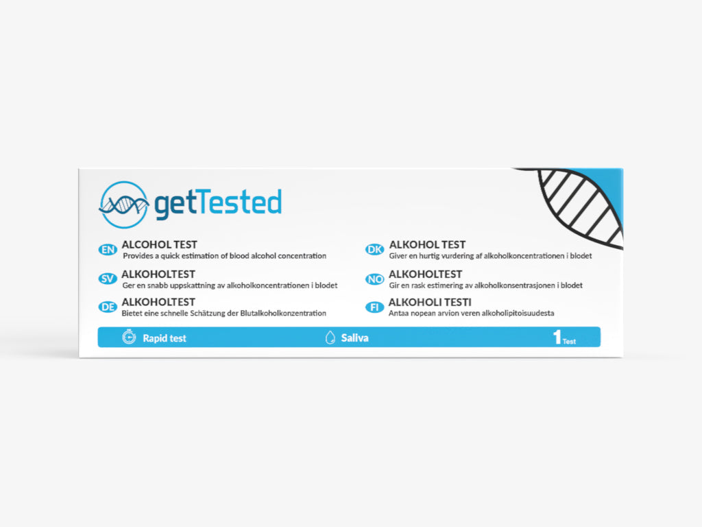 The GetTested breathalyzer test is a simple saliva test. It quickly shows you how much alcohol is in your system. Results are available within 3 to 5 minutes. This allows you to easily and discreetly assess your blood alcohol content and monitor your alcohol consumption.