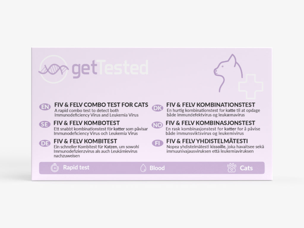 The FIV & FeLV Combo Rapid Test Kit is a dual-function self-test designed for the qualitative detection of feline immunodeficiency virus (FIV) antibodies and feline leukemia virus (FeLV) antigens in cat whole blood, serum, or plasma. This test allows cat owners and veterinarians to test for two of the most serious and life-threatening viral infections in cats using one simple procedure.