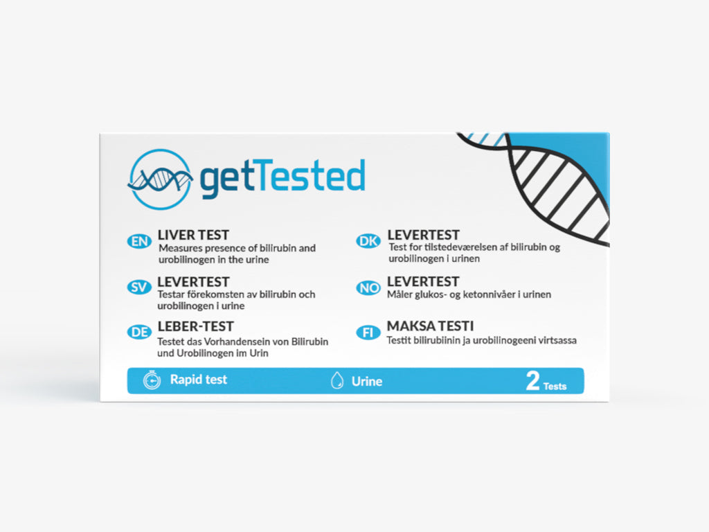 The GetTested Liver Test is a simple home test that eliminates the need to send the test strip to a lab for analysis. Instead, results are available instantly. The test is performed on urine, and the result is then visually compared with the included color scale. By detecting bilirubin and urobilinogen in urine and displaying their concentrations in blood, effective monitoring of liver health is possible.