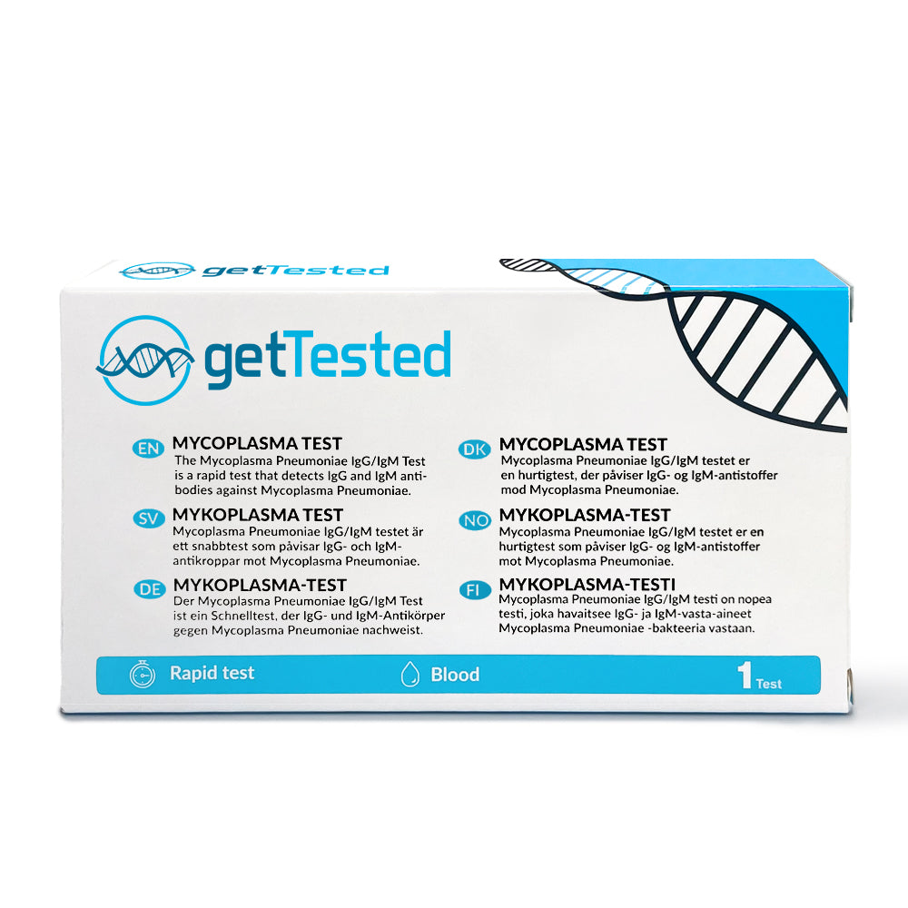 Selbsttest zur Untersuchung auf IgG- und IgM-Antikörper gegen Mycoplasma pneumoniae auf Basis einer Blutprobe. Für die eigenständige Anwendung. Das Ergebnis dient der Orientierung.